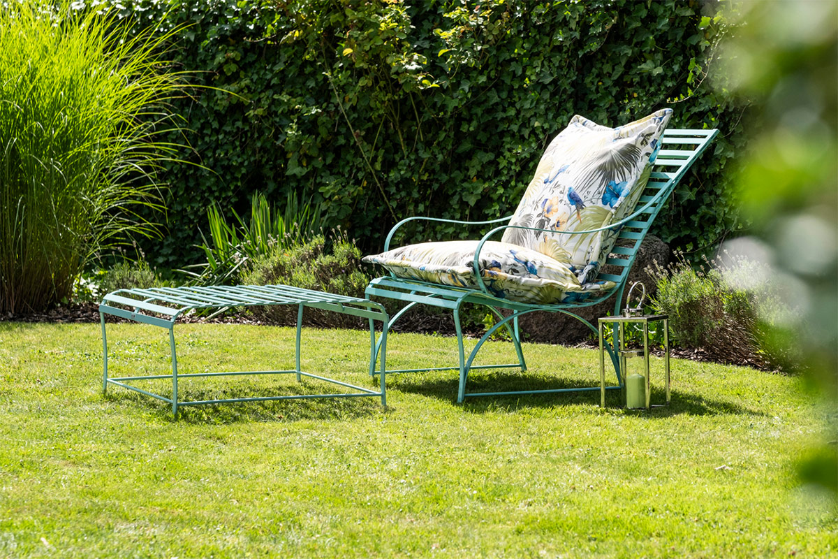 Bequem in der Sonnne liegen und entspannen. Dazu lädt unser komfortabler Sonnensessel Biarritz sowohl als Sitzgelegenheit als auch zum Liegen in Kombination mit dem passenden Biarritz Sonnentisch ein.